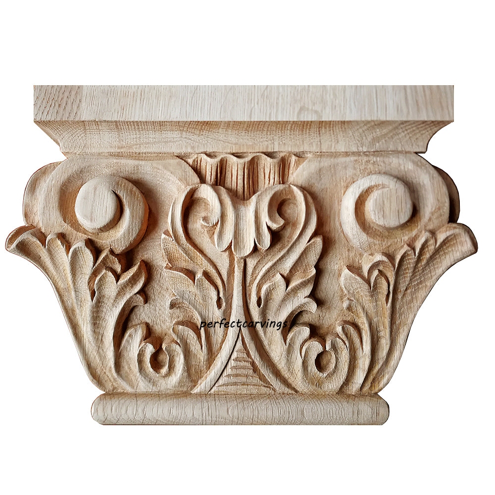 Victorian Style Sprout Leaf Carved 7-1/4"H Pilaster Capital, Hollow Back, Single