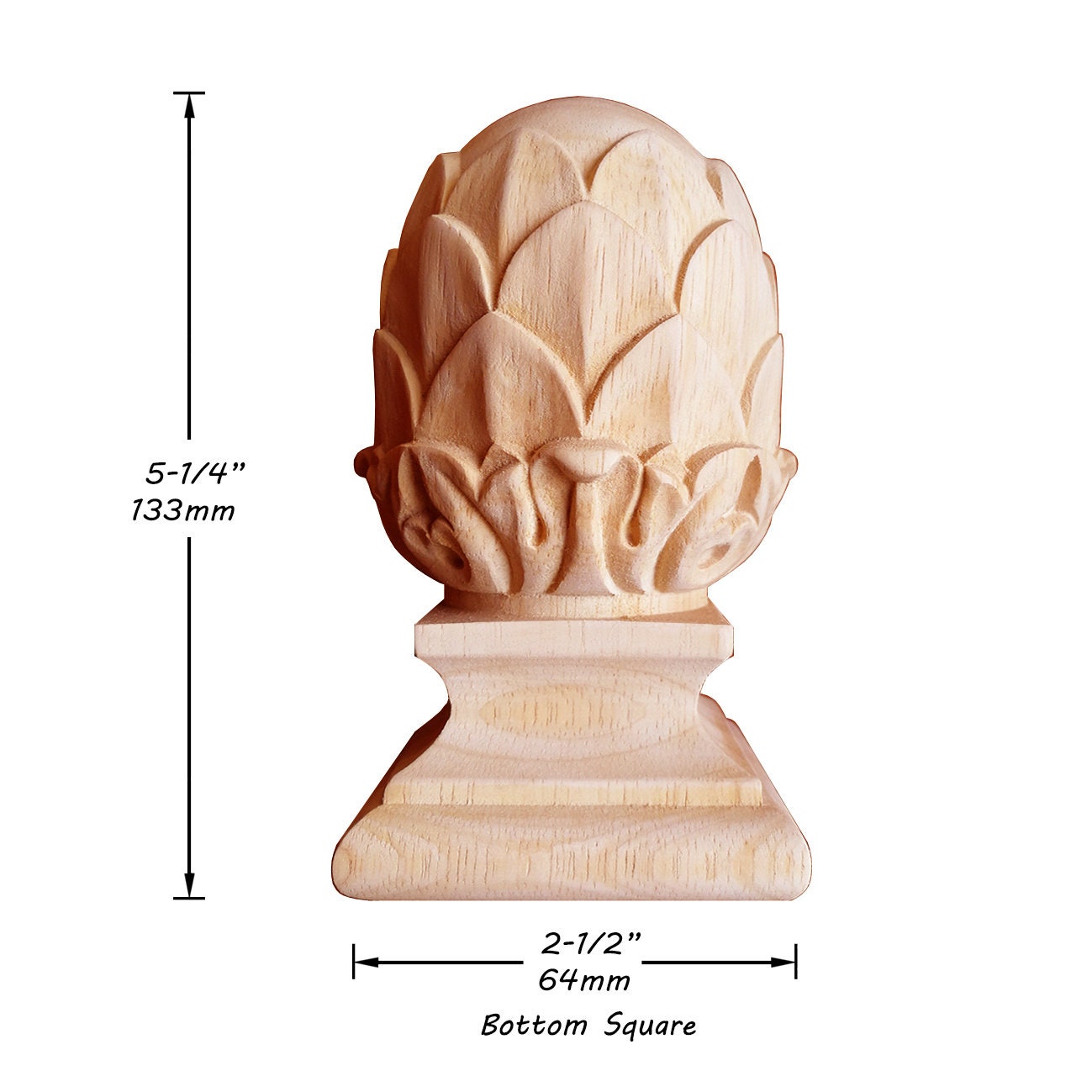 PAIR of FNL-18 Square Bottom Pineapple Carved Wood Finials