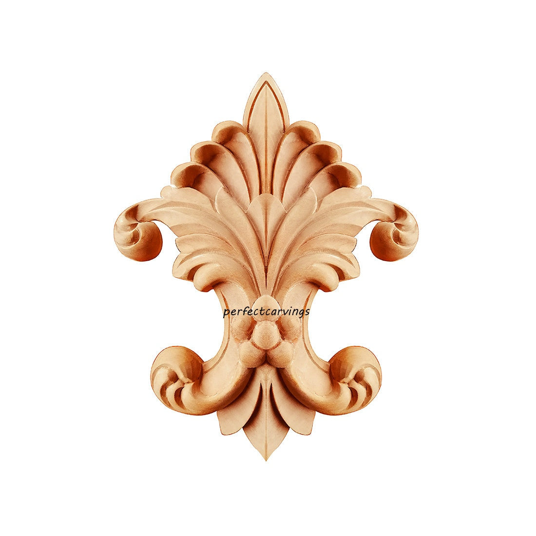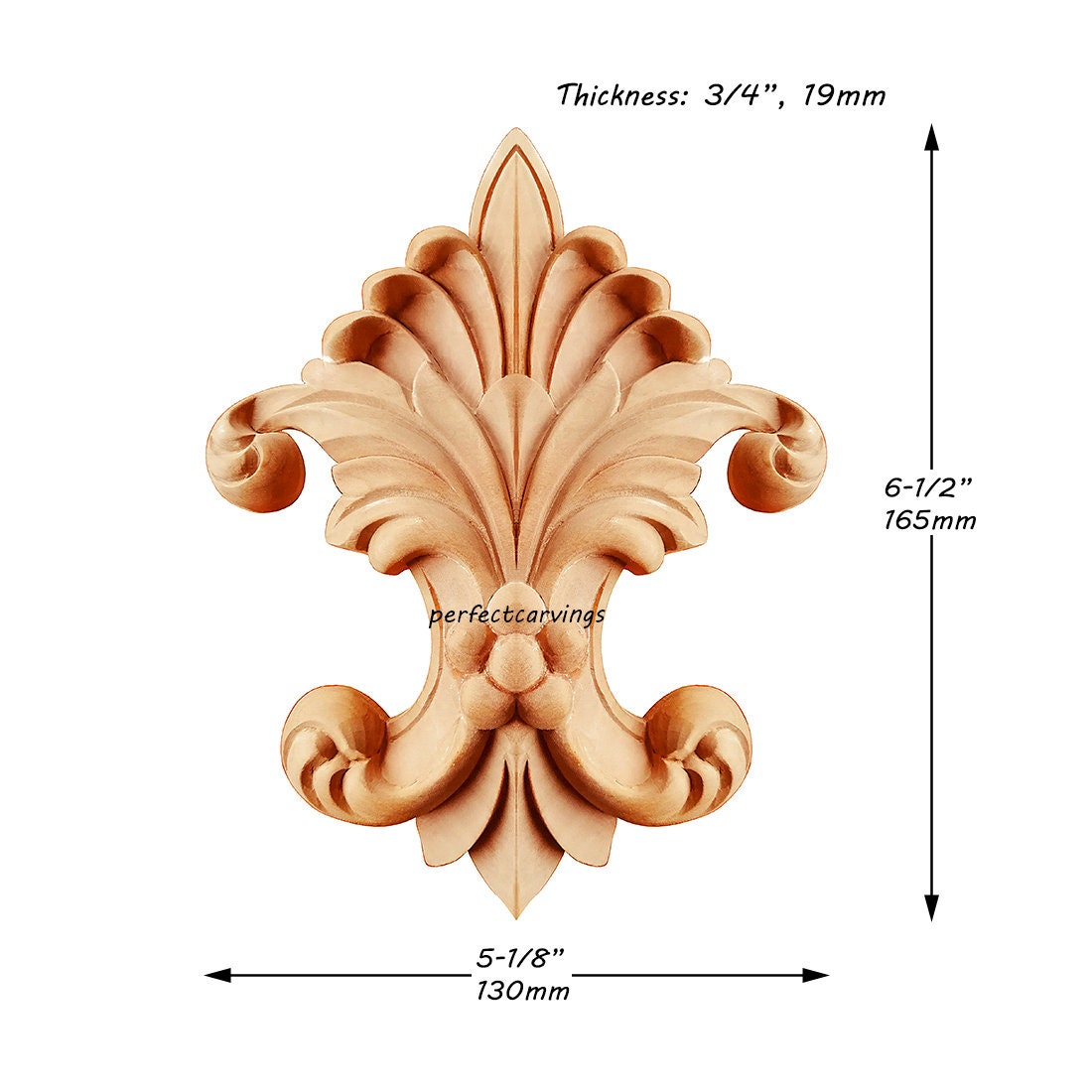 Triple Layers of Leaf Floral Carved Wood Central Applique