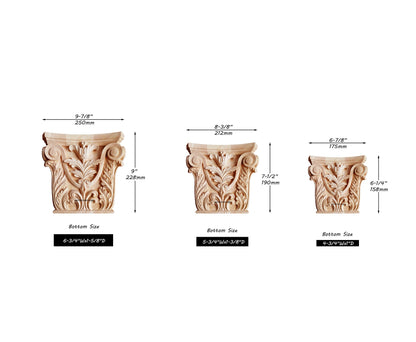 PAIR of Vigorous Leaf Scroll Carved Wood Capitals for Pilaster Columns, Available in 3 Sizes