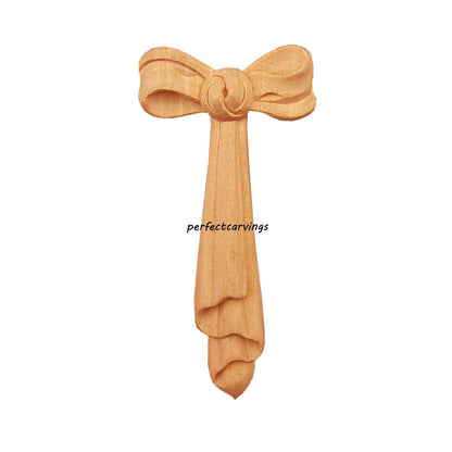 PAIR of Elegant Wood Ribbon Carved Drop Onlays, 3-1/2" & 4-3/4"H