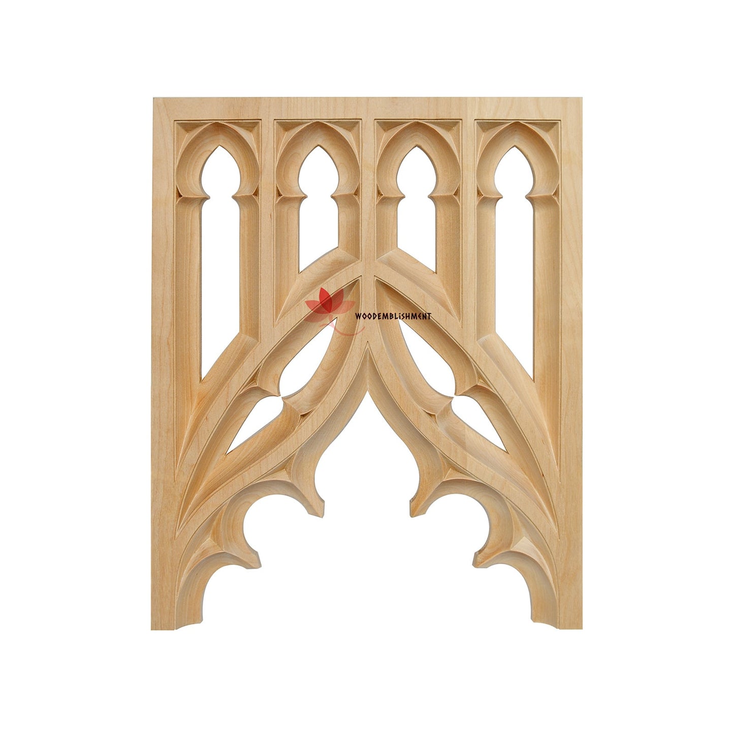 PAIR of PNL-40 Wood Carved Gothic Screen Arch Panels, 11"Wx14"H