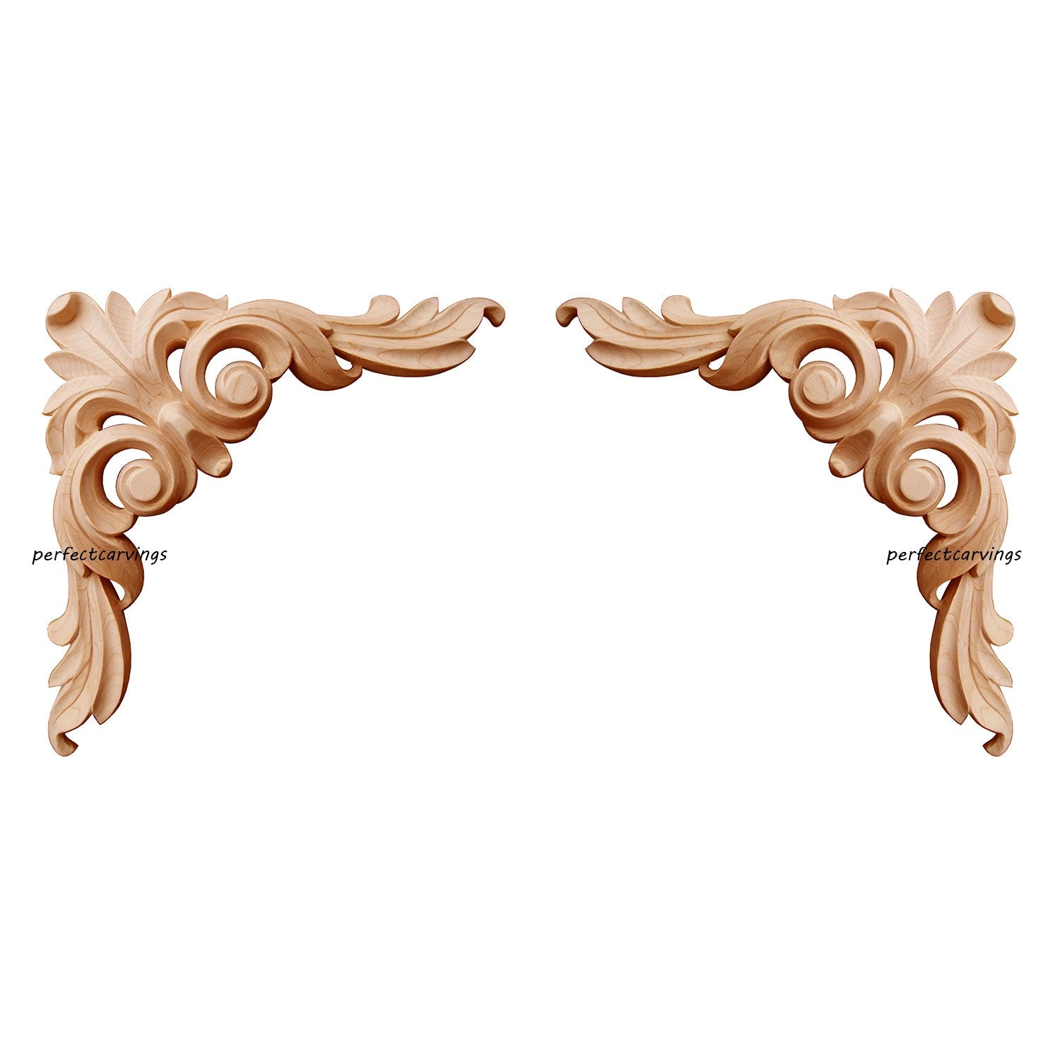 PAIR of Elegant Scrolled Leaf Carved Wood Corner Applique, 4-1/2", 6" & 8"