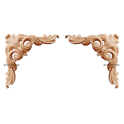 Elegant Scrolled Leaf Carved Wood Corner Applique
